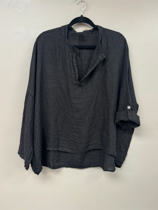 Product Description:We reimagined this top as "Grey Cotton Linen V-Neck Drop-Shoulder Irregular Top Retro-Boho Ode to 90s Lazy and Relaxed Style Light Retro Casualness". The collision of cotton linen and low-saturation gray tones integrates the core elements of Bohemian casual aesthetics, breaking the stereotypical boundaries between traditional basic tops and a relaxed atmosphere.Product Highlights:This grey cotton-linen top features a V-neck, dropped shoulders, and an asymmetrical design, reminiscent of the relaxed, laid-back style of the 90s. Made from the signature natural linen fabric of the relaxed line, it boasts iconic retro details including a frayed V-neck, dropped shoulders, an asymmetrical hem, and roll-up sleeves. The overall design is simple yet sophisticated, suitable for both everyday wear and casual loungewear.Cotton and linen with a relaxed, forgiving cut, balancing style and comfort. This grey cotton and linen top features a relaxed fit that flatters the figure. The natural linen fabric is breathable, skin-friendly, wrinkle-resistant, and structured. The dropped shoulders and sleeves can be rolled up to three-quarter or nine-quarter length, allowing for a flowing, comfortable, and unrestricted movement. It exudes a relaxed, 90s bohemian vibe. The fabric is suitable for spring, summer, and autumn. The frayed V-neckline flatters the shoulders and neck, while the irregular hem adds a touch of design. It highlights a casual silhouette while allowing ample room to move, ensuring comfort for both outings and lounging at home. The natural texture of the grey cotton and linen adds a touch of sophistication, balancing a casual yet rustic feel.Retro-Boho style, adaptable to various occasions. The natural breathability of the fabric and the softness of the gray tone make it a comfortable item for everyday outings, a relaxed look for lounging at home, or even a stylish outfit for strolling through a market by pairing it with bottoms. It is a versatile and high-end item that combines the texture of a relaxed and casual style with the practicality of a light retro look for various occasions.Product Details:Fabric: Cotton Linen BlendPlease Note:Minor color differences may exist due to batch differences.