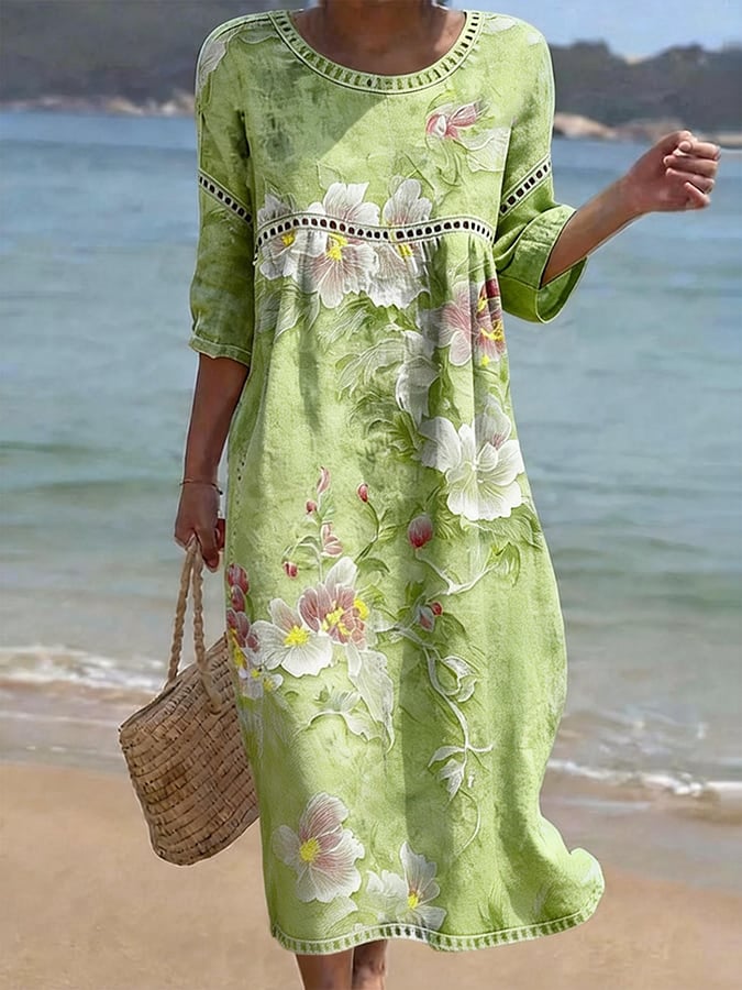 Women'S Casual Color-Block Cotton And Linen Dress