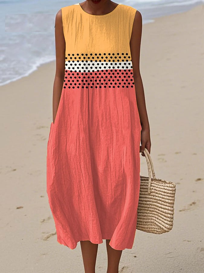 Women's casual cotton-linen printed dress