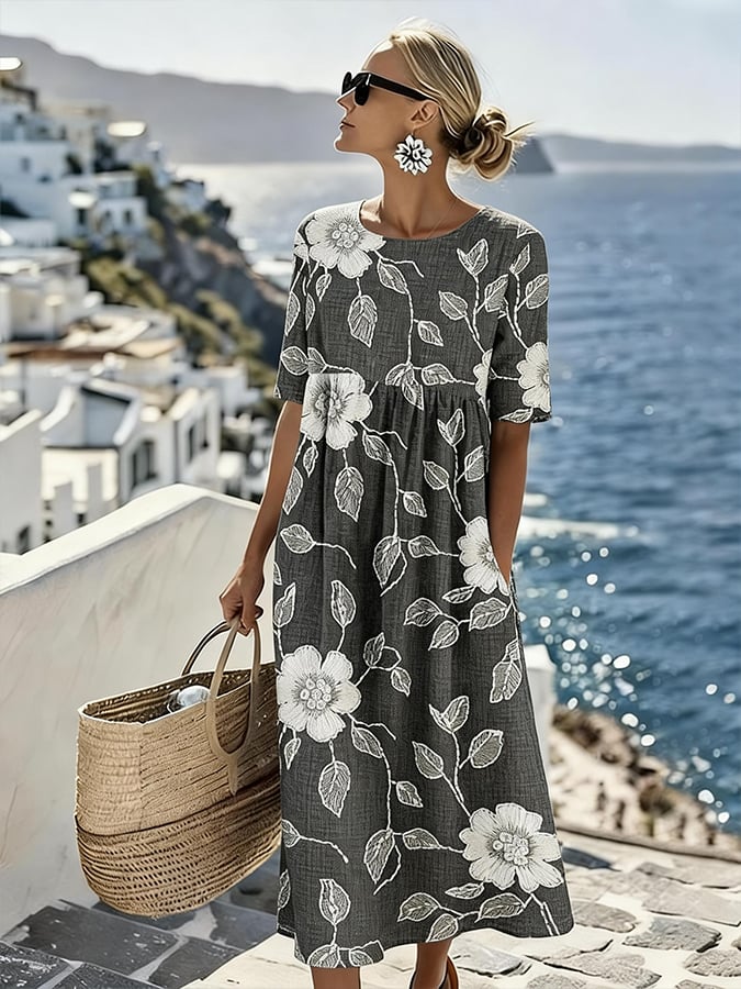 Women'S Vacation Round Neck Short Sleeve Printed Dress